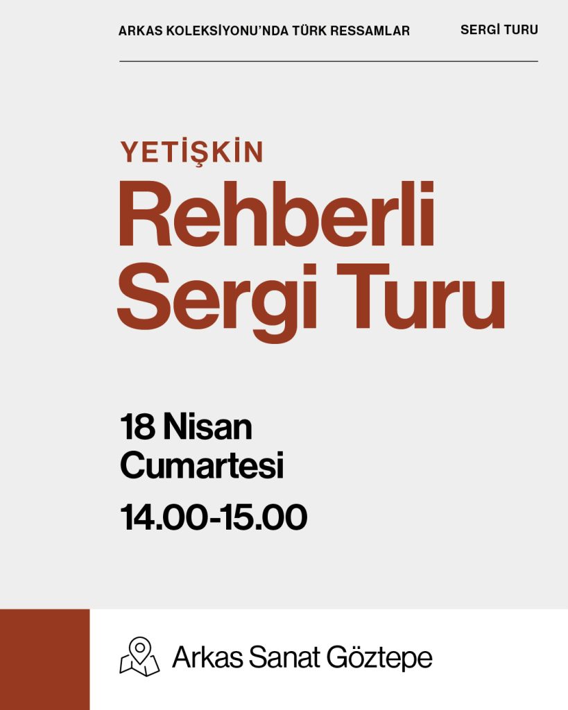 Arkas Sanat Göztepe’de yer alan Arkas Koleksiyonu’nda Türk Ressamlar başlıklı sergi bağlamında Arkas Sanat rehber ekibi tarafından gerçekleştirilecek tur, sergilenen Türk Resmi koleksiyonunun ana çerçevesine ve eserlere odaklanır. Tur boyunca Türk resim sanatının farklı dönemlerine ait eserler; sanatçıların üslup özellikleri, ele aldıkları temalar ve dönemin sanatsal yaklaşımları üzerinden ele alınır.